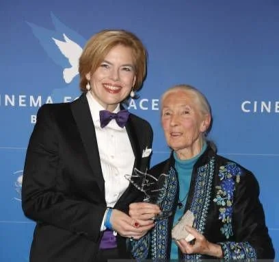 Los Angeles - Dame Jane Goodall, the pioneering primatologist who redefined our understanding of chimpanzees and humanity's bond with nature, died peacefully on October 1, 2025, at age 91 in Los Angeles during a speaking tour. The Jane Goodall Institute announced her passing, calling her a "true hero for the planet." Our founder, Mr. Jaka Bizilj of Cinema for Peace, met Jane just a week ago in New York during Climate Week with the goal of launching an Environmental Council at The World Forum. On our stage in 2018, she declared the Green Film Award for „Jane“ "the most important film prize I ever received," its honor elevating environmental cinema's voice. In New York last week she was intellectually sharp, her insights as incisive as ever. Both forged in Tanzania, Mr. Bizilj in school, Jane Goodall in the jungle with her chimpanzees, where she proved their functional tool use and our shared realm of conscious action, their bond underscored her timeless bridge building. Her finding at that time was a scientific revolution - humans were not the only species capable to use tools.